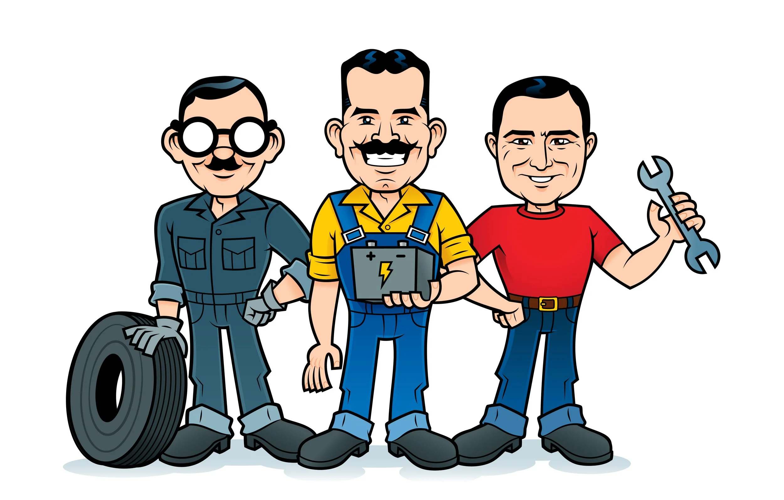 I was recently given the amazing opportunity to work with some of the most recognizable branding in American culture. The Pep Boys: Manny, Moe, & Jack have returned to serve the next generation of drivers. My updated character designs still reflect the boys’ personalities, with the slightest of changes to help usher them into the 21st century. We can expect to see the boys take a bigger role in providing quality car care for everyone.
